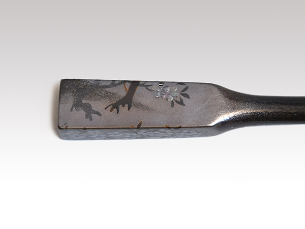 | 商品説明 | 夜を表す銀地に金銀漆で見事な夜桜蒔絵を施しております。 銘は金地で「一抱 花押」と入っております。 素材は鼈甲です。 良い状態です。 |