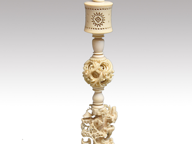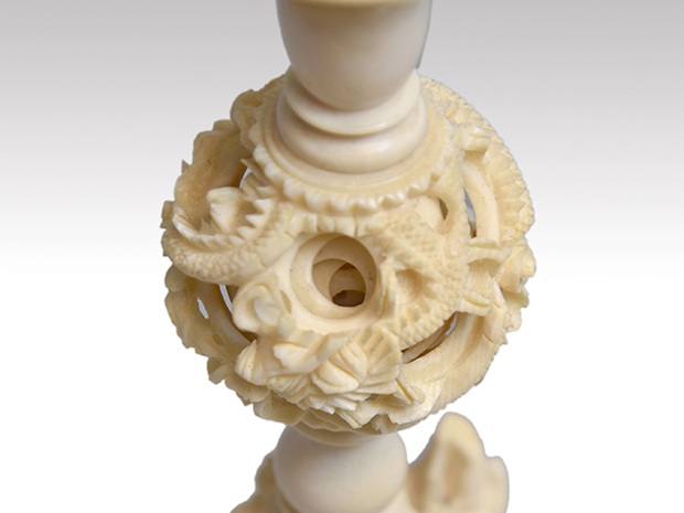 象牙製 天球台 小天球入り 高さ:33.7cm