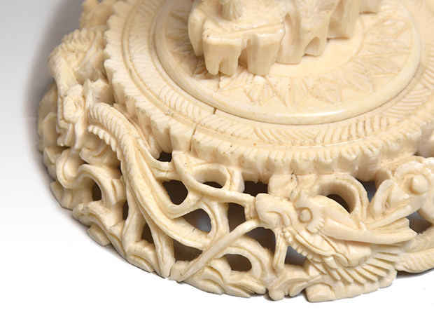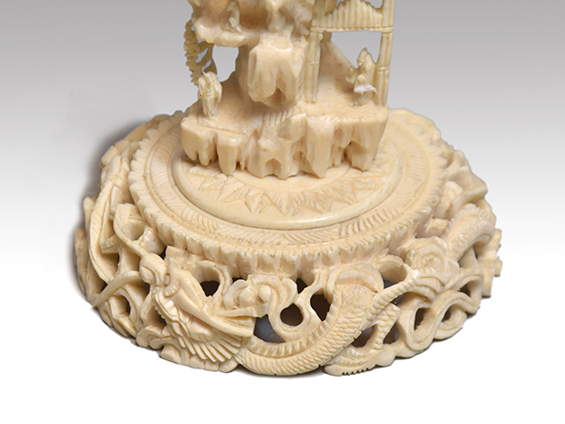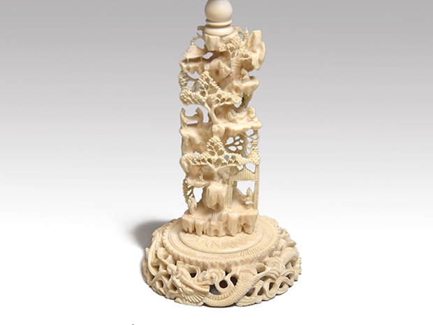 | 商品説明 | 象牙の天球を置く台座です。 下の台座から龍、山水、天球6層、透かし入りとなっております。 台は8ピースにばらばらに出来ます。 一番下と一番上に亀裂がございます。 何を置いてもよろしいですね。 |