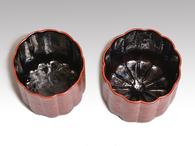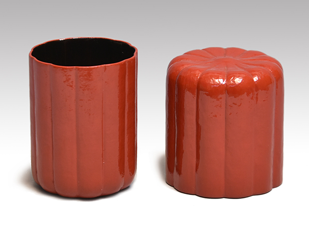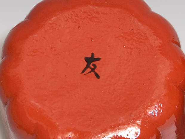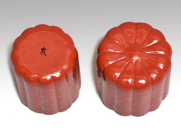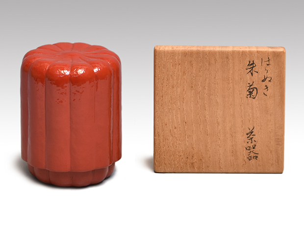 赤地友哉(作) 張抜 朱菊形茶器 共箱