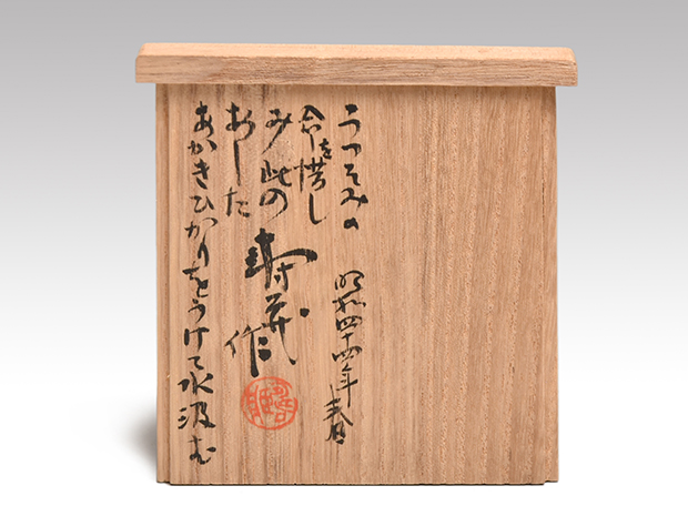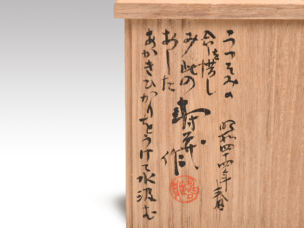 | 商品説明 | 49年髹漆で人間国宝になられた赤地友哉作の張り抜きで型に紙を漆で何層にも張り重ね仕上げに朱漆を施した作品で軽くて丈夫に出来ております。 原型は唐物で古くから伝わっております。 底に「友」の字が漆で書かれております。未使用でキズ欠点なく良い状態です。 この作品は高岡市美術館賛助出品作で展示札が入っております。 髹漆は、漆芸において蒔絵、螺鈿による加飾法を除く各種の下地、上塗りに関する漆塗りの基本的な技法の総称でございます。 |