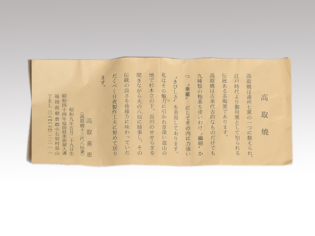 高取喜恵 13代八仙妻 1934年 福岡県で生まれる 1963年 作陶を始める 1969年 福岡県美術展で入選する