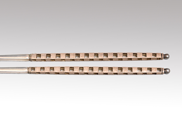 南鐐(銀製) 四方透火箸 十五代 大西清右衛門(作) 共箱
