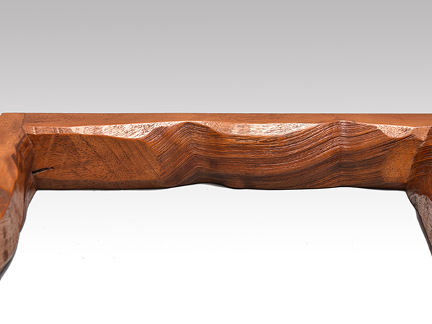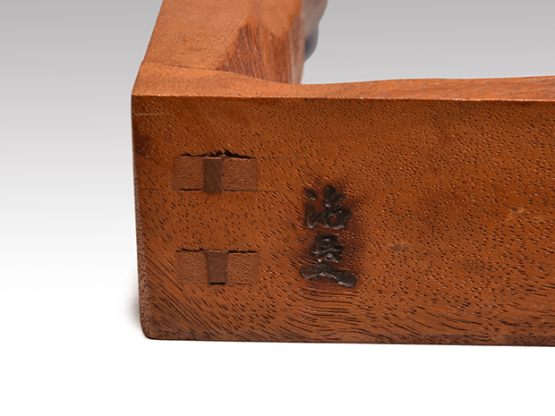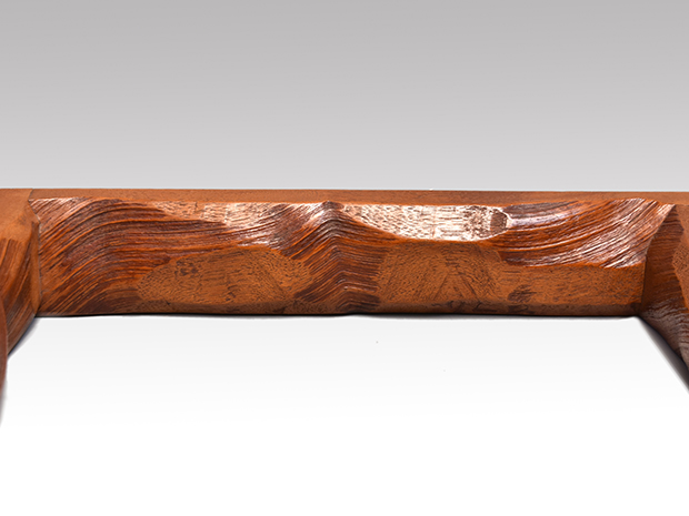 珍しい蔦の炉縁です。炉縁の太さが取れる蔦材はとても貴重です。 50年ほど前に木曽山の山中なので調達が出来たのでしょう。 肌は天然の部分と成形した部分があり変化に富んでおります。 ダイナミックな炉縁です。 脇に「治兵衛」の焼印が捺されております。 とても良い状態です。