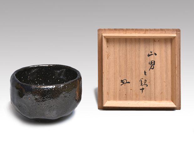 黒茶碗 西本願寺 大谷尊由自作 銘「山男」 共箱 二重箱