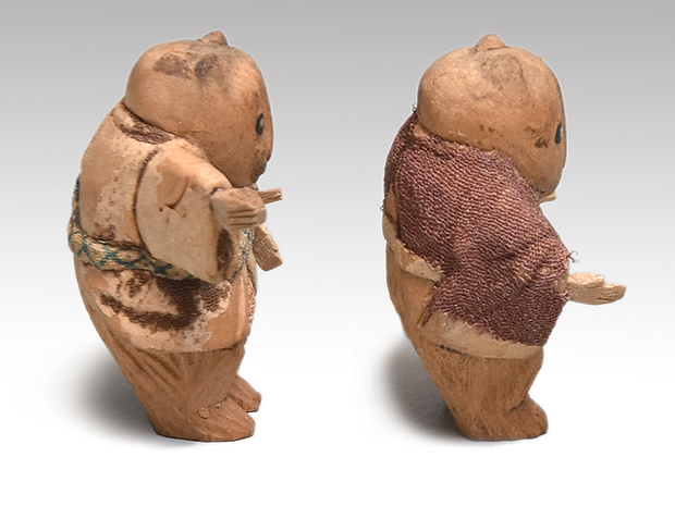 木彫 加茂人形 一対(2体) 明治時代 浅原革世氏旧蔵の品