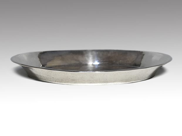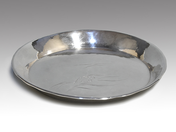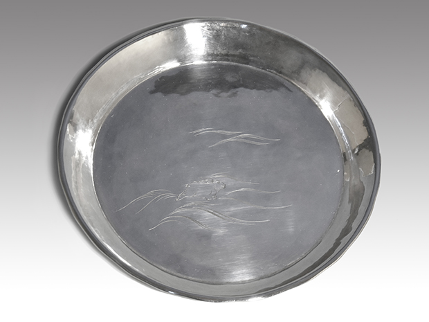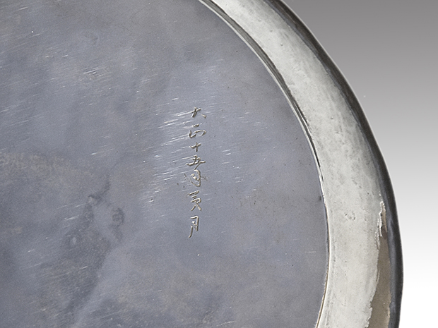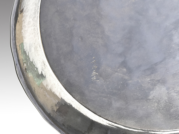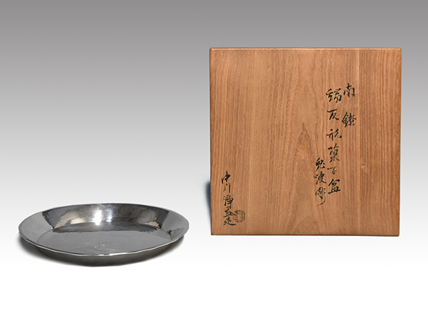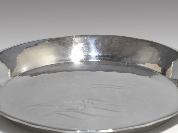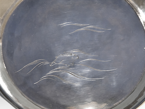 十代 中川浄益(作) 南鐐(純銀) 端反形菓子盆 兎波彫入り 大正15年作 共箱 菓子器