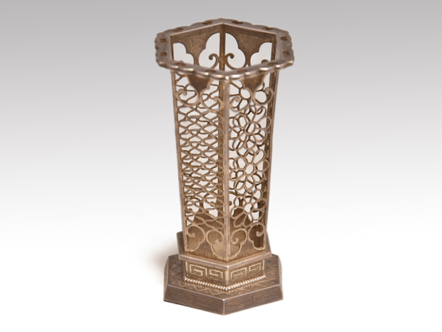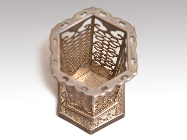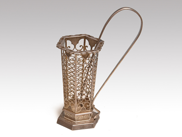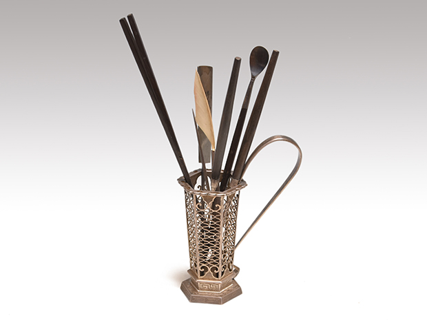 香道具 江戸時代 香筋建 南鐐(銀製) 六面透かし入り 火道具7種類付