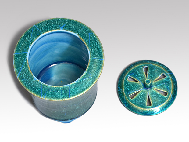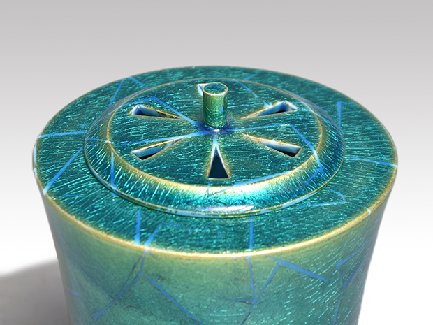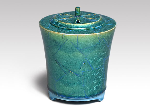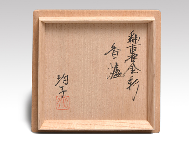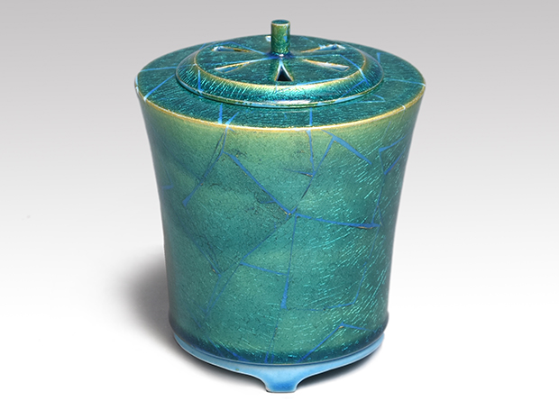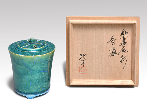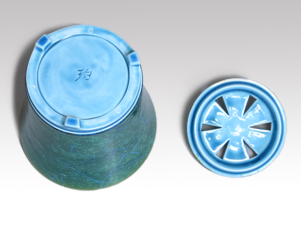 昭和44年 西部工芸展 入選「釉裏金彩あじさい紋青釉水指」珀子の号を使用