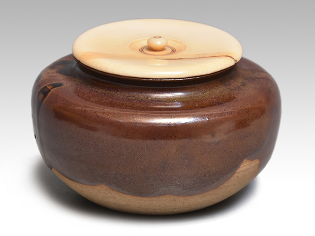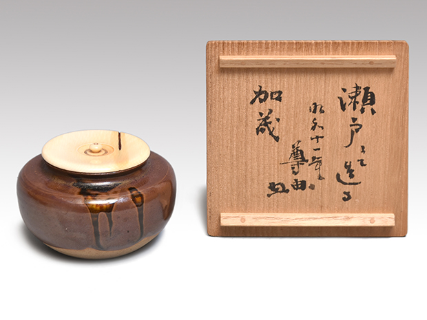 瀬戸広口茶入 大谷尊由(作) 銘「加茂」 昭和11年作 共箱