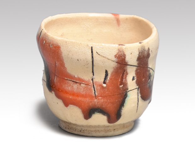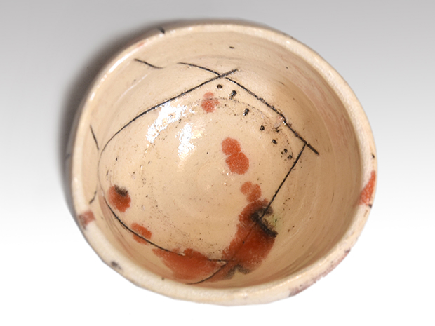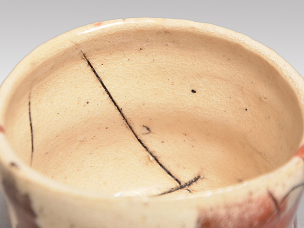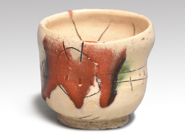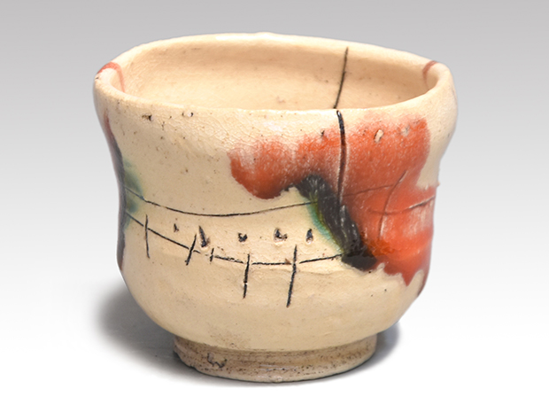 山田和(作) 赫釉織部 ぐい呑み 線刻文様 個性的作品 共箱 未使用