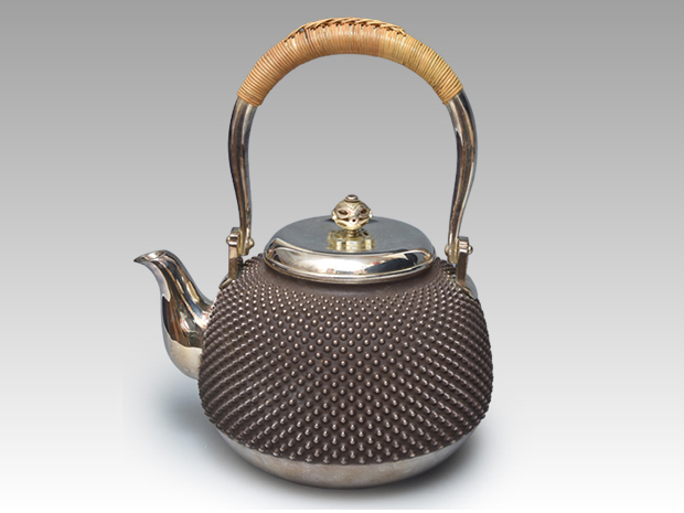 鉄燗鍋 銚子 江戸中期頃 唐草文 銀象嵌入 蒔絵蓋付