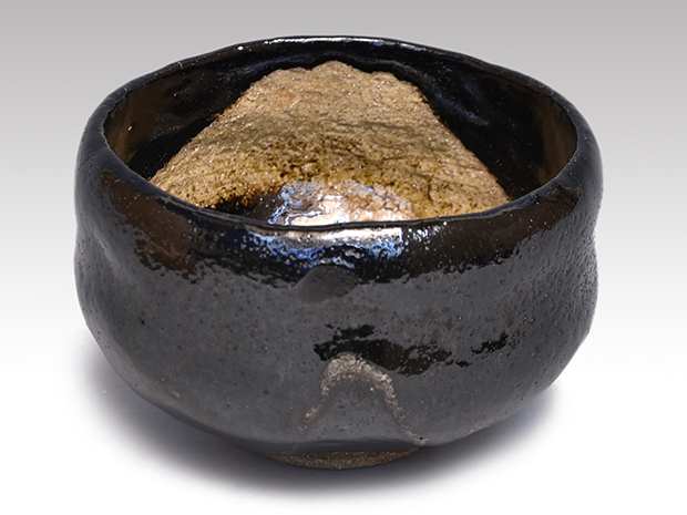 九代 大樋長左衛門(作) 富士絵 黒茶碗 共箱 銘「祥雲」 表千家 即中斎宗匠箱書