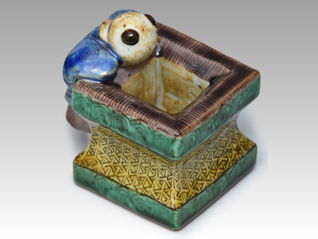 須田青華(造)九谷焼 吉田屋写 一閑人蓋置 共箱