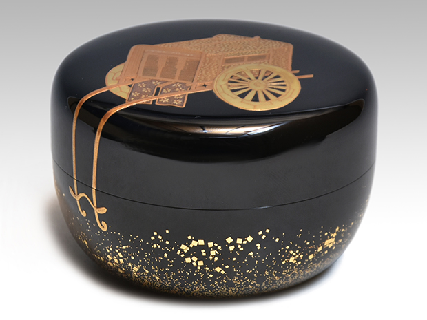 御所車蒔絵平棗 清瀬一光(作)共箱 即中斎朱在判、箱書付