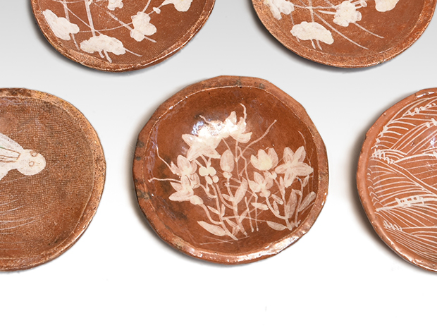 大野鈍阿(作) 赤楽 絵変銘々皿 5客 共箱 銘々皿にも