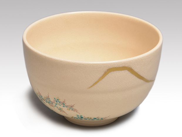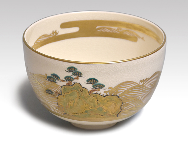 清閑寺窯 三代 杉田祥平(作) 色絵金彩 波間の松島画茶碗 共箱