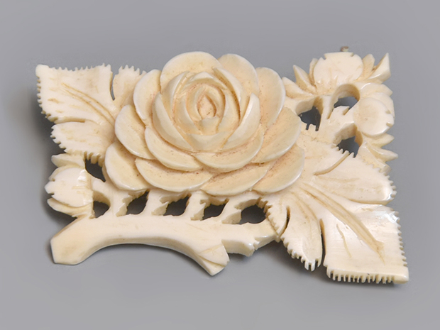 象牙 薔薇文 ブローチ