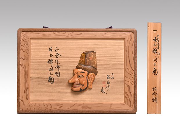 法隆寺御物 伎楽酔胡王面 木彫 額装 市川鉄琅(てつろう)造 共箱