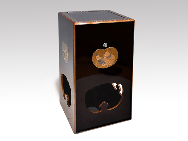 松花堂好又は遠州好 袋棚 四方に布袋と山水蒔絵入り
