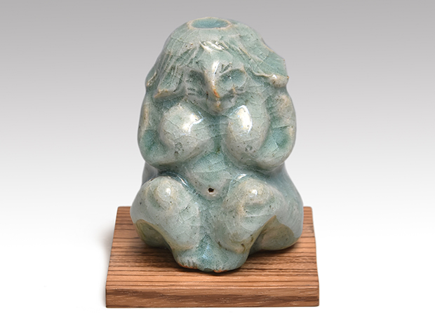 鹿児島寿蔵(作) 陶製作品 「翡翠河童」 肥前弓野窯にて作る 昭和49年作 共箱