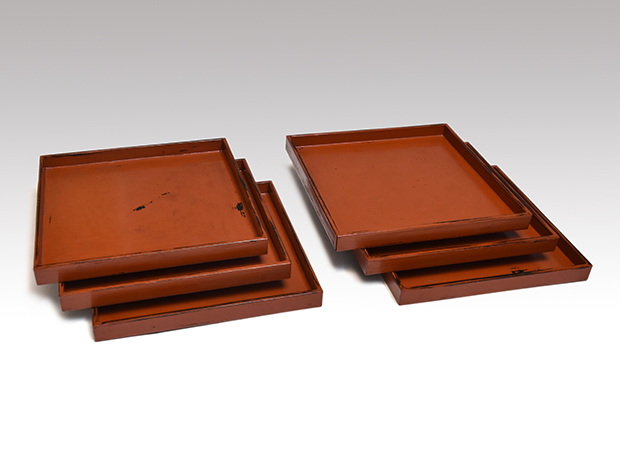 根来膳 6枚 懐石膳 二代 村瀬治兵衛(作)共箱 折敷