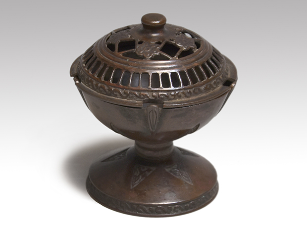 佐波理(砂張)舟 花入 江戸時代 花留め、鎖付