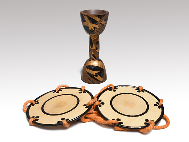 小鼓胴と皮一組 束ね熨斗蒔絵胴 江戸中期頃