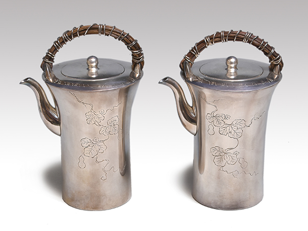 不昧公好 南鐐(銀製) 酒器 一対(2点) 夕顔彫金入り 九代 中川浄益(作) 明治18年作 共箱